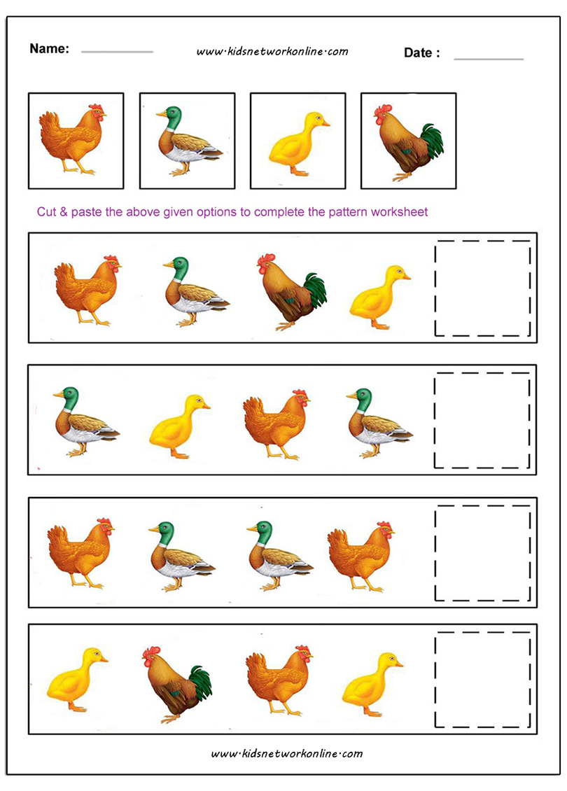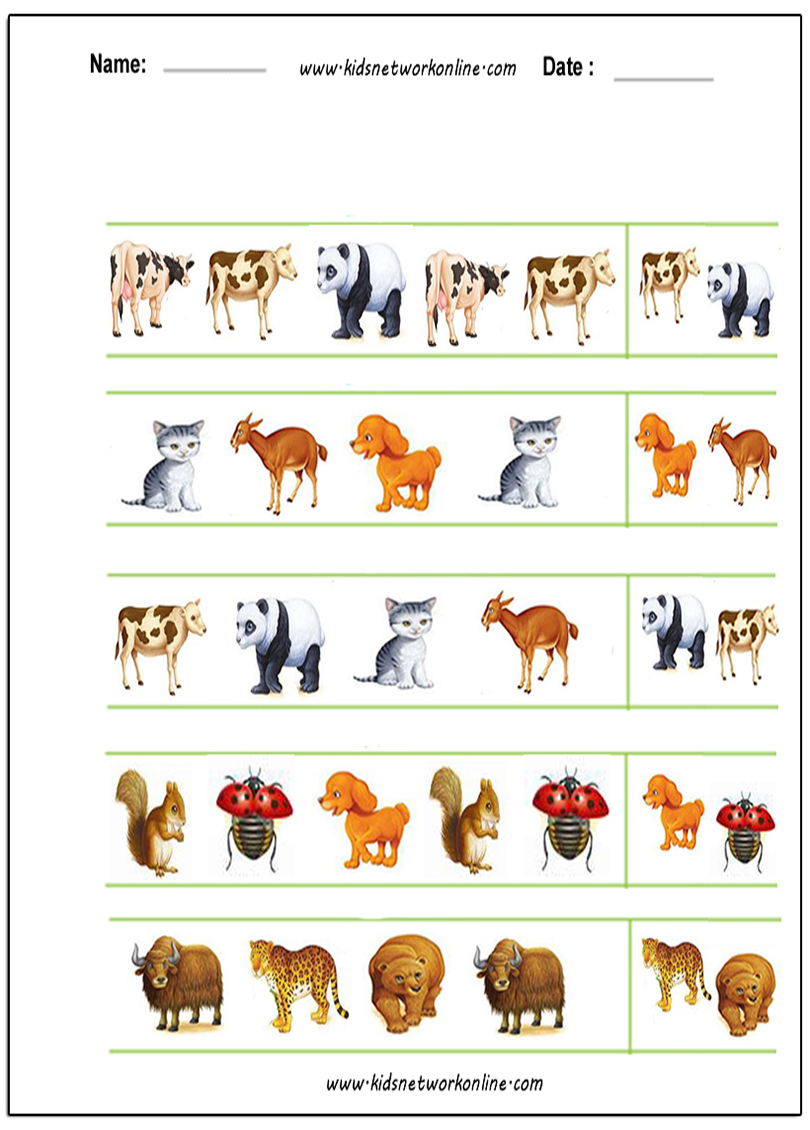 In this section we are covering the topic-Animal patterns.Kids study each pattern to determine which animal should come next.This worksheets help your kids in identifying sequential patterns.